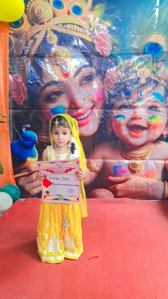 किण्डर वैली स्कूल में श्रीकृष्ण जन्माष्टमी महापर्व की खुशी में खास बच्चों के लिए क्यूट श्री कृष्ण – श्री राधे, ग्रुप गीत डांस, दही मटका फोड़ सहित मनभावन प्रतियोगिताएं आयोजित की गई, जिसमें सुन्दर परिधानों में सजे और हाथों में बाँसुरी लिए मासूम बच्चों ने भी अपनी प्रतिभा की शानदार प्रस्तुति दी उनकी मनोहारी छवि और प्रस्तुति देखकर उपस्थिति सभी अभिभावकगण भी अत्यंत ही हर्षित हो गए व स्कूल प्रबंधन के इस आयोजन की अभिभावकों ने सराहना कर सभी स्टॉफ सदस्यों को शुभकामनाएं व बधाई दी।