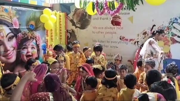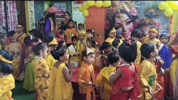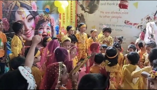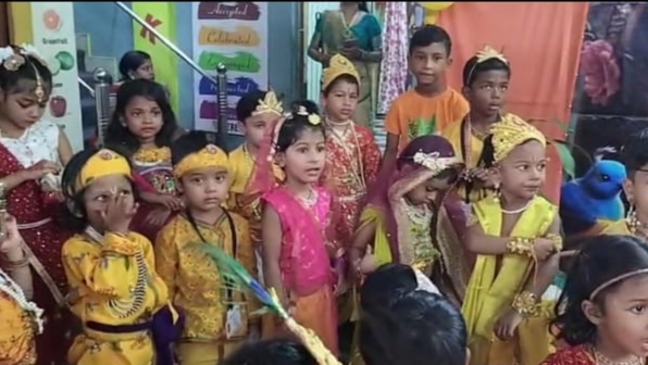 श्रीकृष्ण जन्माष्टमी महोत्सव की खुशी में स्कूल परिसर को आकर्षक गुब्बारे, रंग बिरंगे झालरों व भगवान श्रीकृष्ण की चित्ताकर्षक बाल तस्वीर से खूबसूरत ढंग से सजाया गया था। कार्यक्रम के पूर्व मिसेज रीनू ने श्रीकृष्ण व श्री राधे की वेशभूषा में खूबसूरत ढंग से सजे मासूम बच्चों को श्री कृष्ण जन्माष्टमी महोत्सव क्यों मनाते हैं? इसे बहुत ही सहज सरल ढंग से बताया और उनको इसका महत्व भी बताए। जिसे बच्चों ने एकाग्रचित्त होकर सुना।