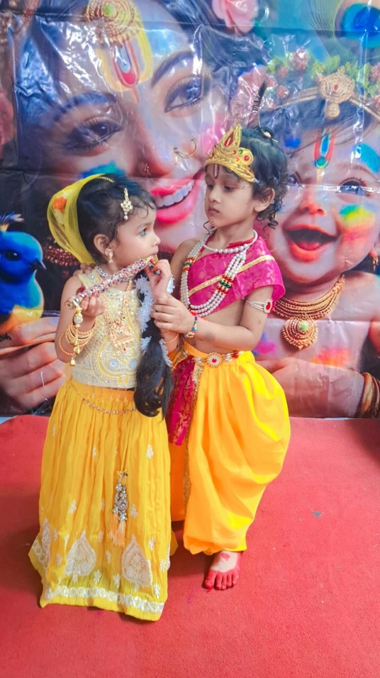 श्रीकृष्ण जन्माष्टमी महोत्सव की खुशी में स्कूल परिसर को आकर्षक गुब्बारे, रंग बिरंगे झालरों व भगवान श्रीकृष्ण की चित्ताकर्षक बाल तस्वीर से खूबसूरत ढंग से सजाया गया था। कार्यक्रम के पूर्व मिसेज रीनू ने श्रीकृष्ण व श्री राधे की वेशभूषा में खूबसूरत ढंग से सजे मासूम बच्चों को श्री कृष्ण जन्माष्टमी महोत्सव क्यों मनाते हैं? इसे बहुत ही सहज सरल ढंग से बताया और उनको इसका महत्व भी बताए। जिसे बच्चों ने एकाग्रचित्त होकर सुना।