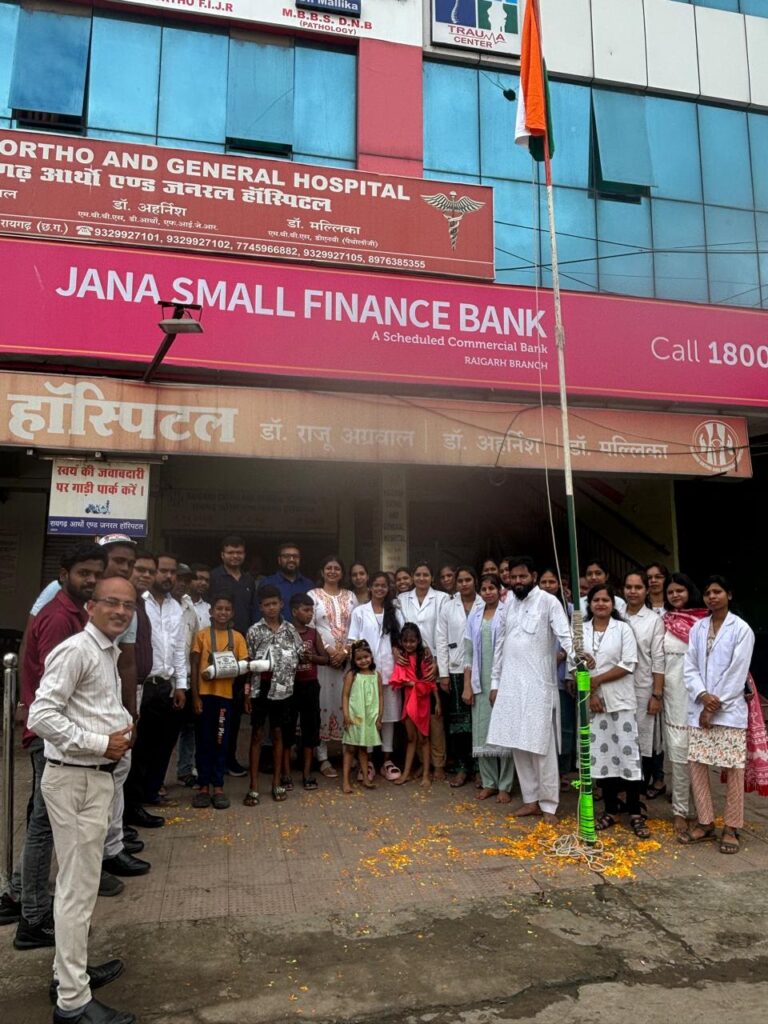 राष्ट्रीय पर्व स्वतंत्रता दिवस के उपलक्ष्य में शहर के प्रसिद्ध अस्पताल रायगढ़ आर्थो एंड जनरल हॉस्पिटल में भी ध्वजारोहण कर आजादी का जश्न मनाया गया।