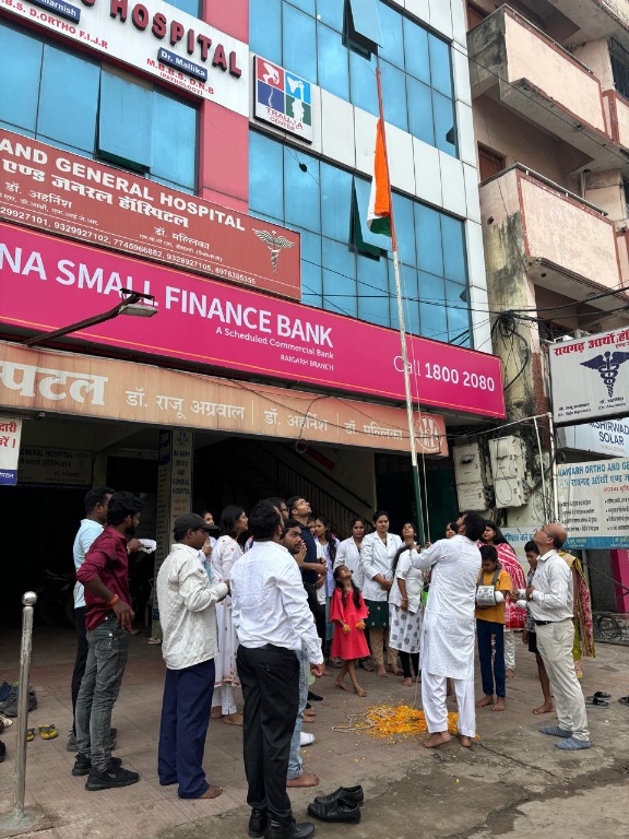जिले के जाने-माने अस्थि रोग विशेषज्ञ डॉ. राजू अग्रवाल के रायगढ़ आर्थो एंड जनरल हॉस्पिटल के प्रांगण में 79वाँ स्वतंत्रता दिवस समारोह के अवसर पर उनके पुत्र डॉ. अहर्निश अग्रवाल ने भारतमाता की विधिवत पूजा-अर्चना कर ध्वजारोहण किया और देश की खुशहाली व समृद्धि की कामना की। ध्वजरोहण पश्चात् मिष्ठान्न वितरण कर एक-दूसरे को स्वतंत्रता दिवस की शुभकामनायें दीं। इस अवसर पर डॉ. मल्लिका अग्रवाल, डॉ. आशुतोष अग्रवाल, डॉ. अलका डनसेना, डॉ. सुजीत दास एवं समस्त स्टॉफ मौजूद रहे।